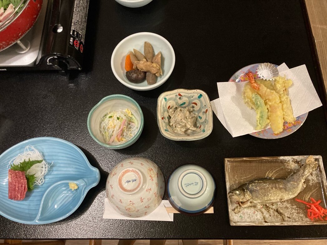 天麩羅、アユの塩焼き、、、そして馬刺し。