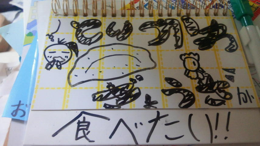 やはり好物の、鶏皮餃子をオネダリしてきた絵です。